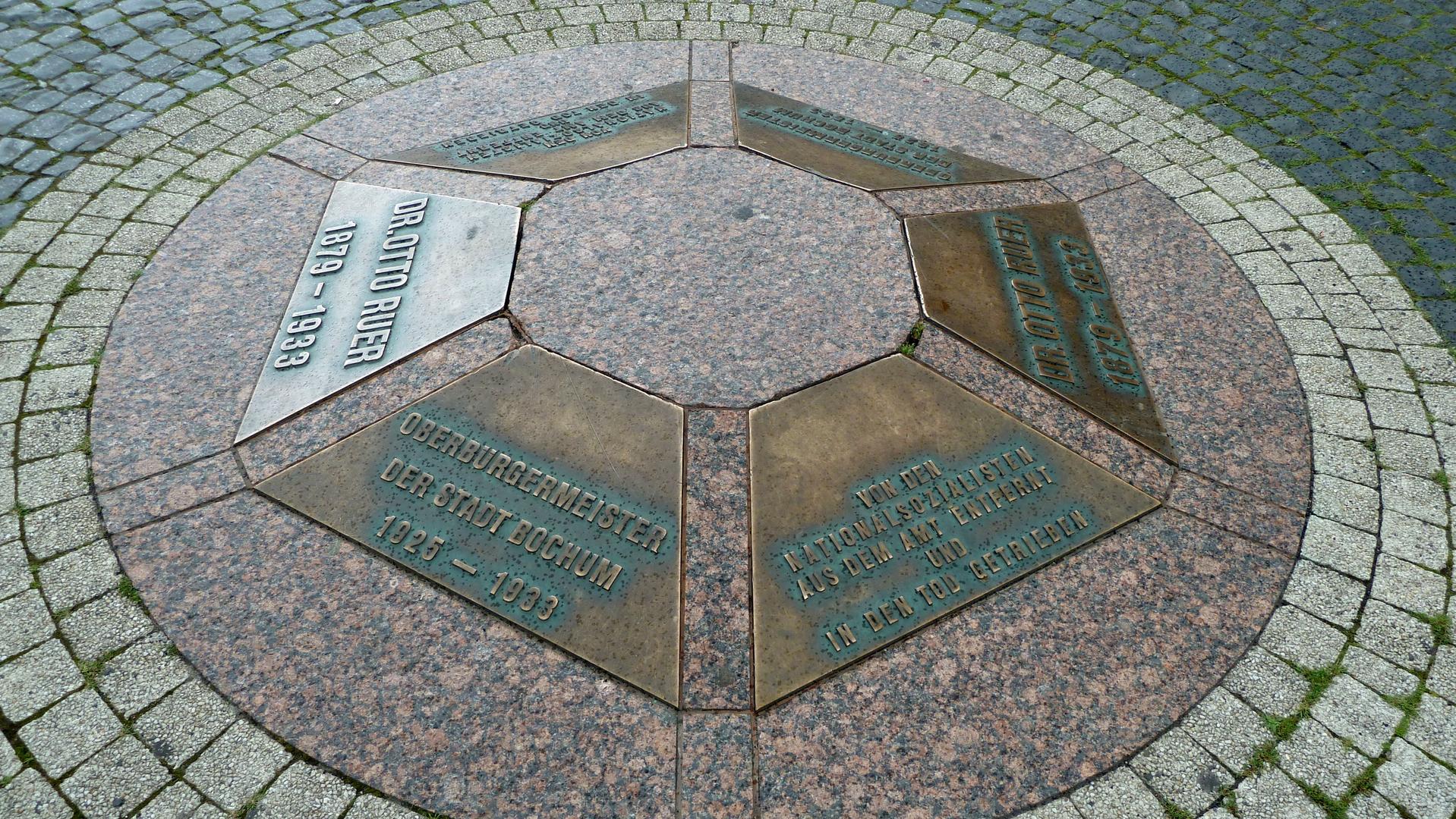 In der Mitte des seit 1959 nach ihm benannten Platzes befindet sich das Erinnerungsmal für den Bochumer Oberbürgermeister der Jahre 1925-1933. Der parteilose Dr. Otto Ruer (*1879) war seit Januar 1925 Oberbürgermeister von Bochum bis er von den Nationalsozialisten im März 1933 abgesetzt und in den Tod getrieben wurde. Vorgeschobene Begründung für die Diffamierung des jüdischen Oberbürgermeisters durch die Nationalsozialisten war unter anderem die angebliche Verschwendung öffentlicher Gelder beim Bau des 1931 fertiggestellten Bochumer Rathauses. Der Dr.-Ruer-Platz wurde 1980 von dem Architekten Karl Gehse neu gestaltet. In der Mitte des Platzes befindet sich die Gedenkstätte. Ursprünglich sollte der Mittelpunkt durch einen großen Obelisken markiert werden.