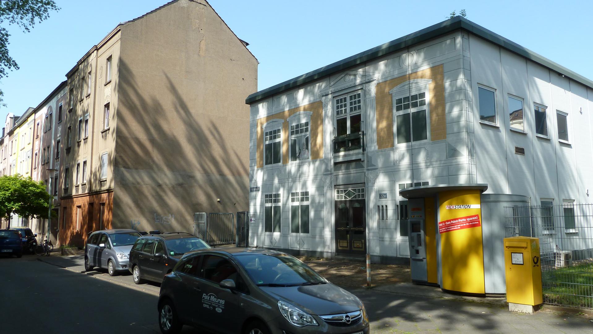 Die Vermittlungsstelle der Deutschen Telekom an der Hermannstraße in Hamme ist ein fensterloser technischer Zweckbau. Die Schmalseite des Gebäudes ist der Straße zugewandt und steht in einer Reihe mit Wohngebäuden. Der Gestalterin bot sich die Darstellung einer alltäglichen Straßensituation mit einer als Trompe-l'oeil („täusche das Auge“) oder Illusionsmalerei gestalteten Fassade an: