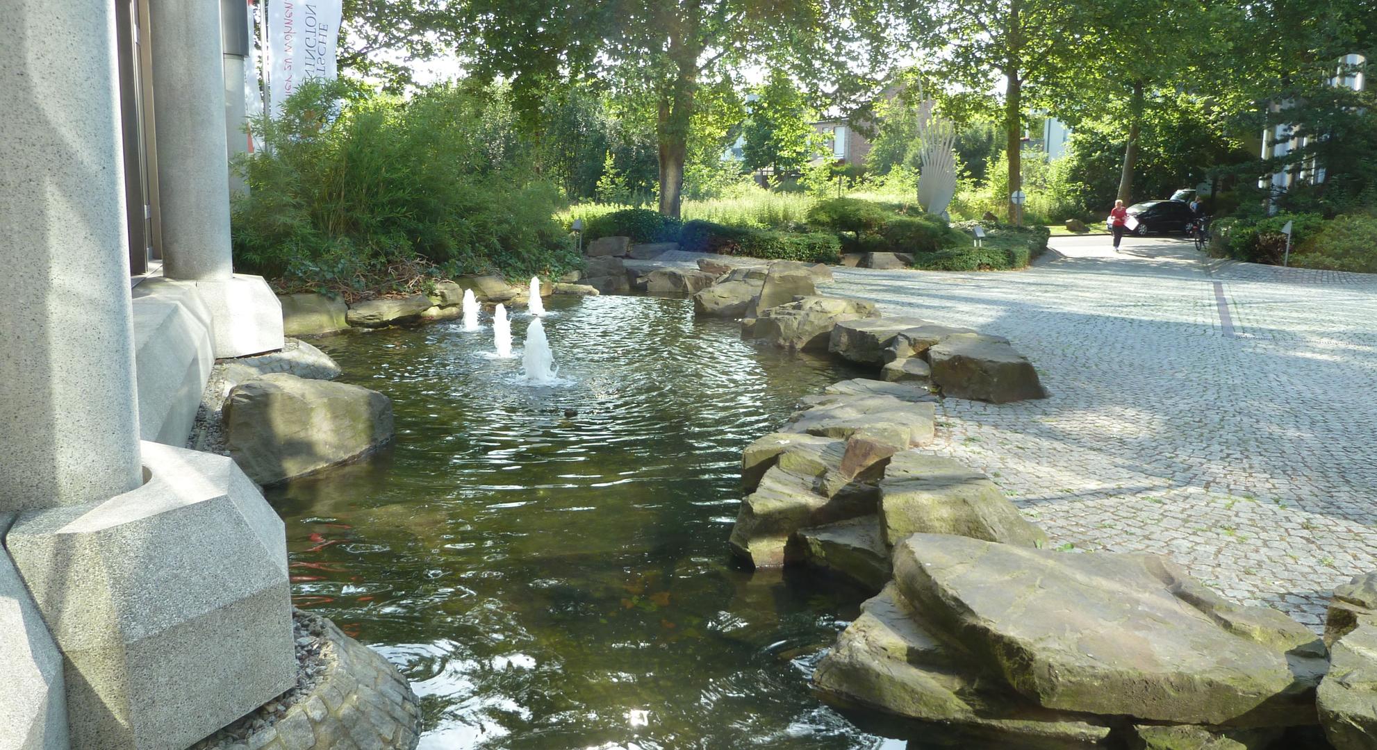 Das Verwaltungsgebäude in Glas und Stahl betont sehr stark die Modernität und Rationalität der Moderne. Andererseits nimmt das Ensemble durch die Teichanlage und die Begrünung auch Bezug auf Natur und Umwelt. Die Plastik greift in Material und Gestaltung diese Bezüge auf und tritt so ihrerseits in einen Dialog mit dem Gebäude und der umgebenden Situation.
