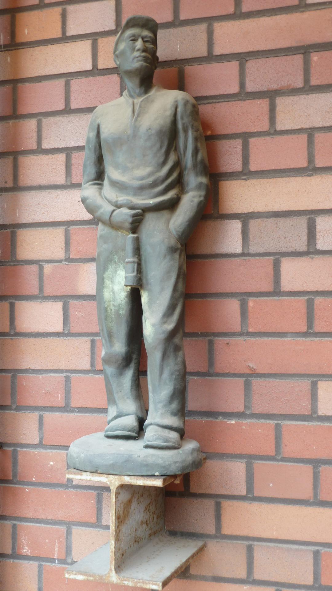 Die Bergmannsfigur am Eingang zum Restaurant Förderturm stammt aus dem Fundus des Bergbau-Museums.