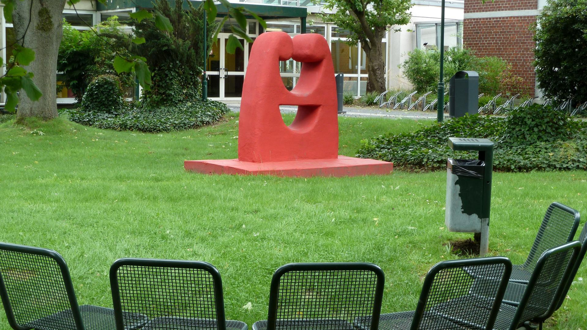 Die Skulptur dient als Wahrzeichen für die Sozialberufe, die in der Evangelischen Fachhochschule gelehrt werden. Die nahebei platzierten Sitzbänke laden zum Verweilen und Reflektieren ein.