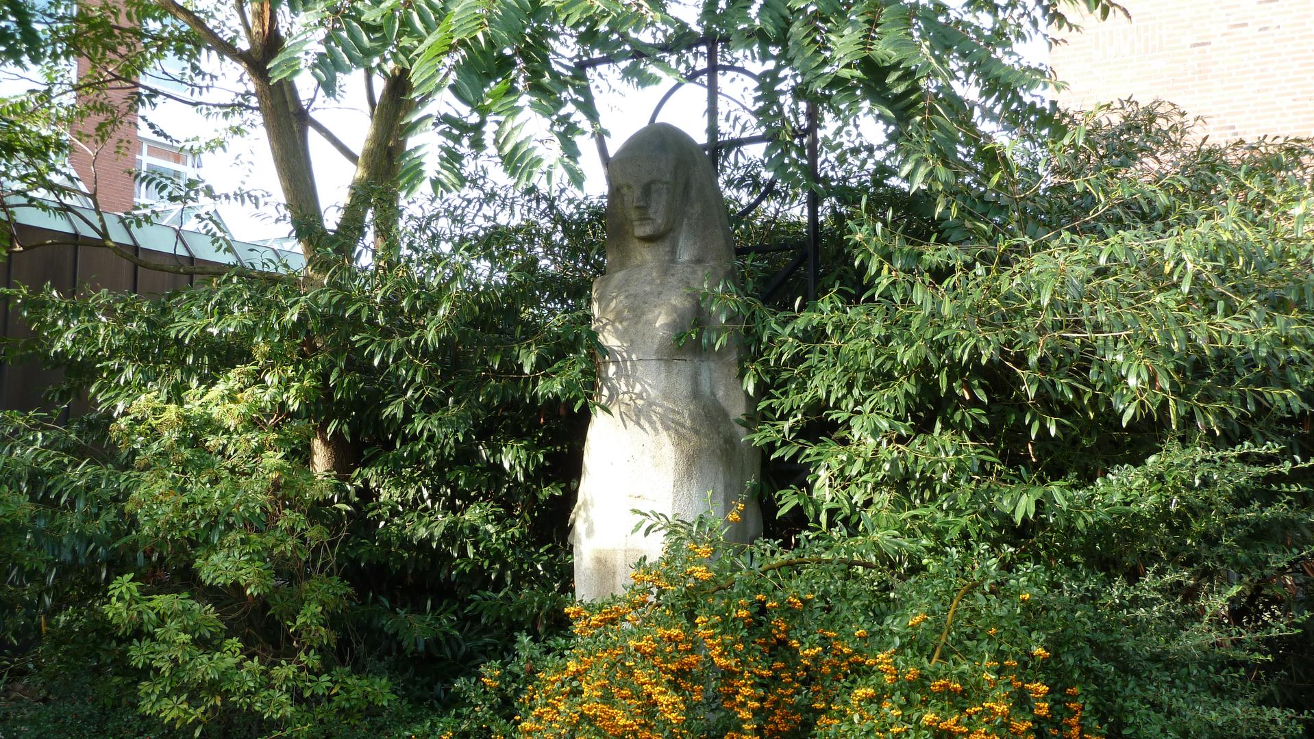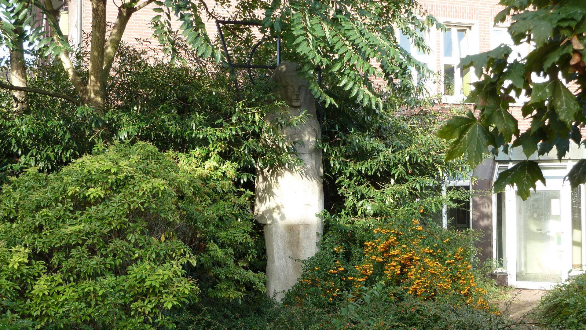 Neben dem Haupteingang zum Bergmannsheil steht - etwas versteckt - seit 1953 eine Figur der Heiligen Barbara, Schutzpatronin der Bergleute. Sie wurde geschaffen von dem Gelsenkirchener Bildhauer Hermann Breucker.