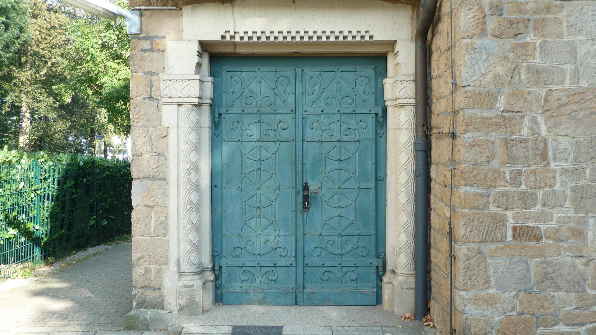 Das Steinrelief im Giebel über dem Eingang der heute denkmalgeschützten Christuskirche in Gerthe stammt vermutlich aus dem Baujahr 1909/10. Es zeigt Christus als Weltenrichter. Nur zwei Jahre später wurde an der Hiltroper Landwehr die katholische St. Elisabeth Kirche erbaut, deren Fassade wesentlich aufwendiger gestaltet ist.