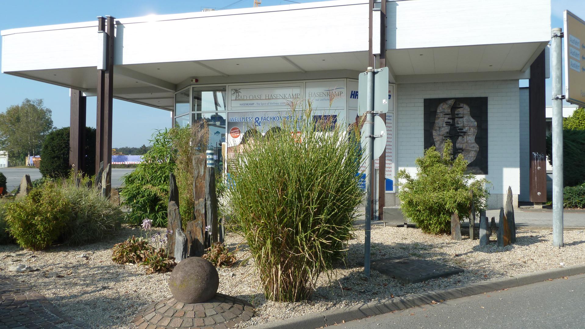 An der Stelle der Firma Hasenkamp befand sich bis 2009 die Galerie Halfmann. An der Ostseite des Gebäudes, mit Blick auf die Zufahrt zum Ruhr-Park, befindet sich seit 1987 ein Keramikrelief, das mit „JH“ signiert ist. Ob es einen Zusammenhang mit dem Namen Halfmann gibt, muss offen bleiben. Hergestellt wurde das abstrakte Relief mit organischer Anmutung von der Firma Wassermeyer in Rheinbach bei Bonn.