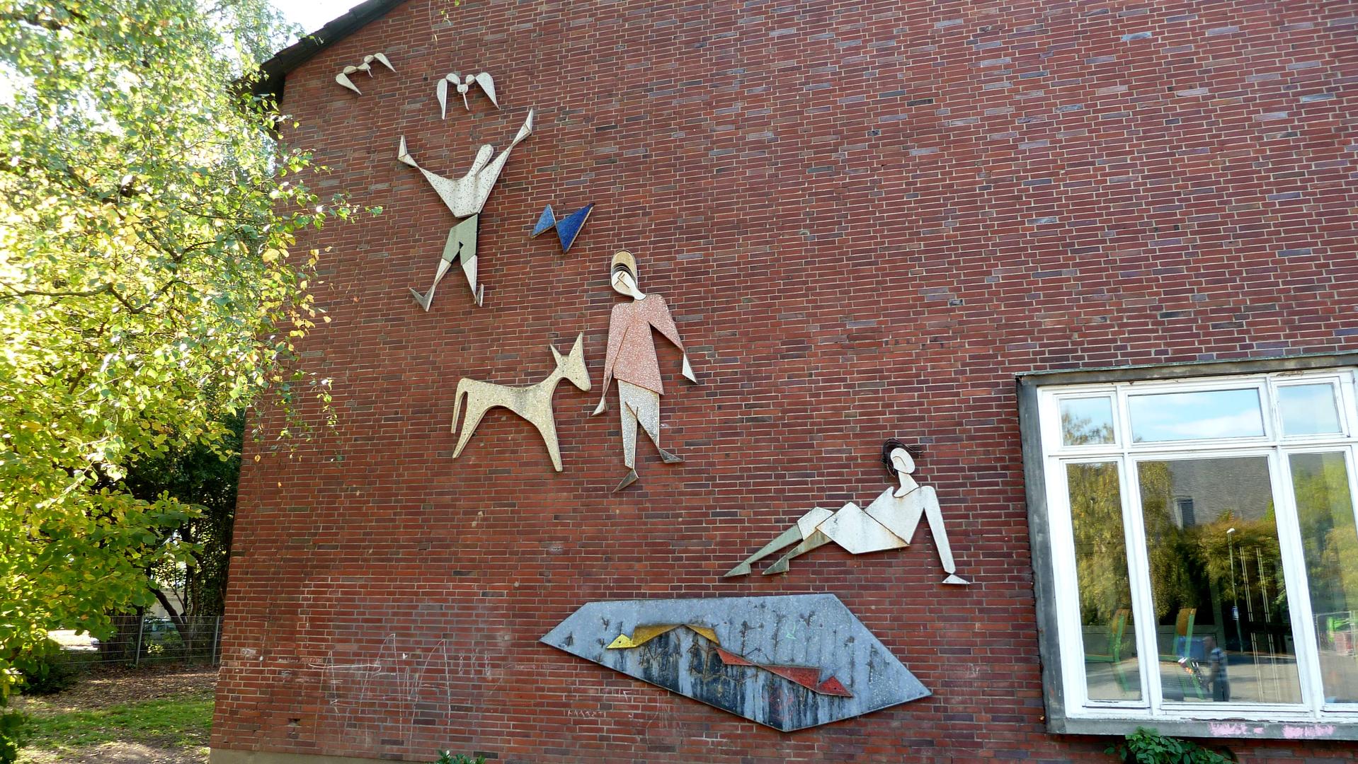 Der Bochumer Künstler Egon Becker schuf 1957 für die Grundschule Am Neggenborn in Langendreer ein Relief aus Betonsteinen, Draht und Mosaik. Es zeigt spielende Kinder, ein Wasserbecken mit Fischen, eine Bergmannskuh (Ziege) und fliegende Vögel am Himmel.