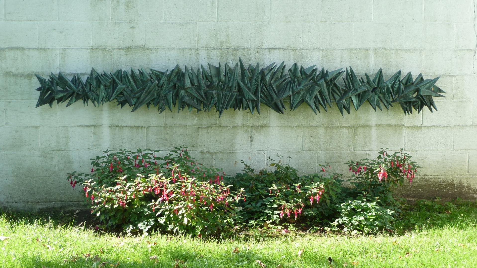 Die Dornenkrone der unbenannten Gedenkstätte auf dem evangelischen Friedhof Langendreer soll die Spuren der Gewalt deutlich machen, die das 20. Jahrhundert geprägt hat. „Damals aus Holz und Sträuchern gebunden, in den vergangenen und heutigen Kriegen in Metall gepresst.“ Die zersplitterte Form der Dornenkrone soll daran erinnern.