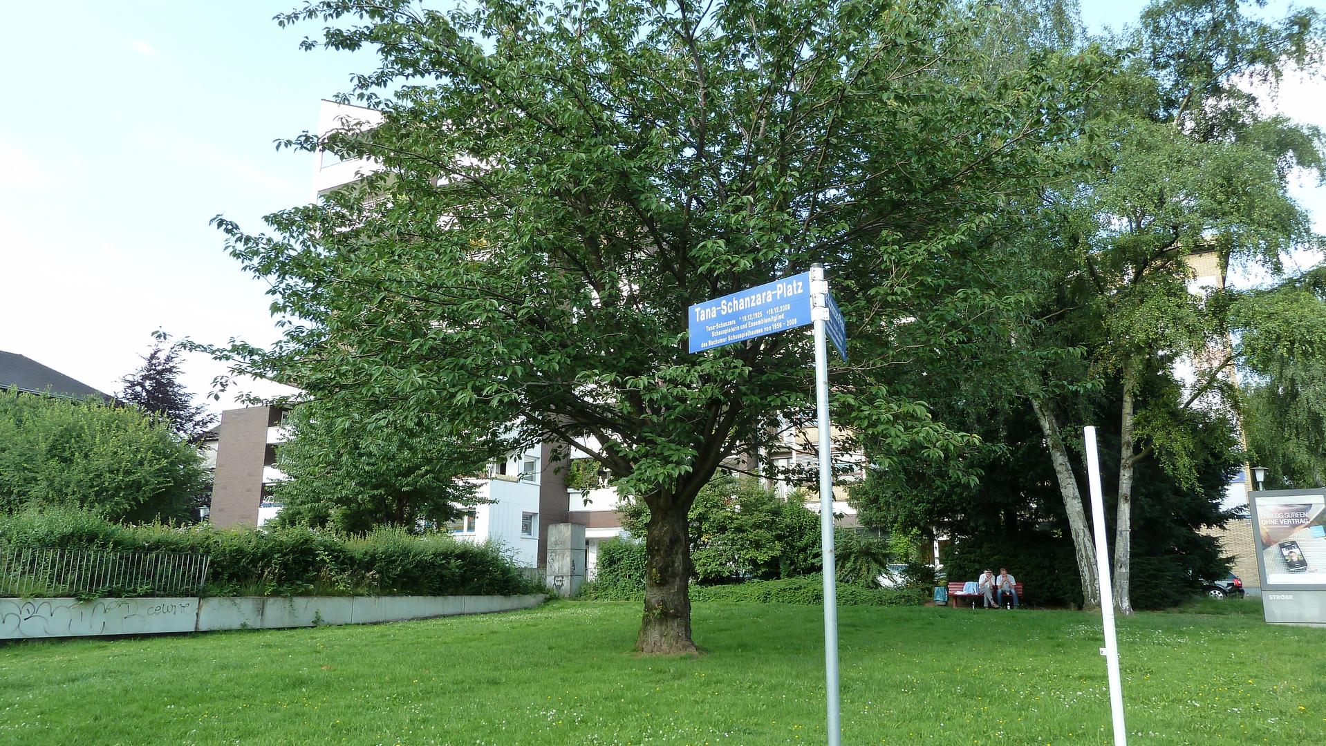 Im Juli 2010 wurde die Wiesenfläche gegenüber dem Schauspielhaus in Tana-Schanzara-Platz umbenannt. Im März 2011 starteten die WAZ und das Schauspielhaus Bochum einen Wettbewerb und eine Spendenaktion zur künstlerischen Aufwertung des als ungenügende Würdigung empfundenen Platzes. Auf Vorschlag einer WAZ-Leserin entschied man sich für „eine Tana, die auf einem Bänksken unter dem Kirschbaum auf ihrem Platz sitzt“. Die Theaterwerkstatt des Schauspielhauses fertigte ein Modell, das von Karl Ulrich Nuss in einen Bronzeguss umgesetzt wurde. Am 3. Juli 2012 wurde das Denkmal auf dem Vorplatz des Schauspielhauses enthüllt und soll nach dem Abschluss der Bauarbeiten an der Oskar-Hoffmann-Straße in etwa zwei Jahren auf den Tana-Schanzara-Platz umziehen.