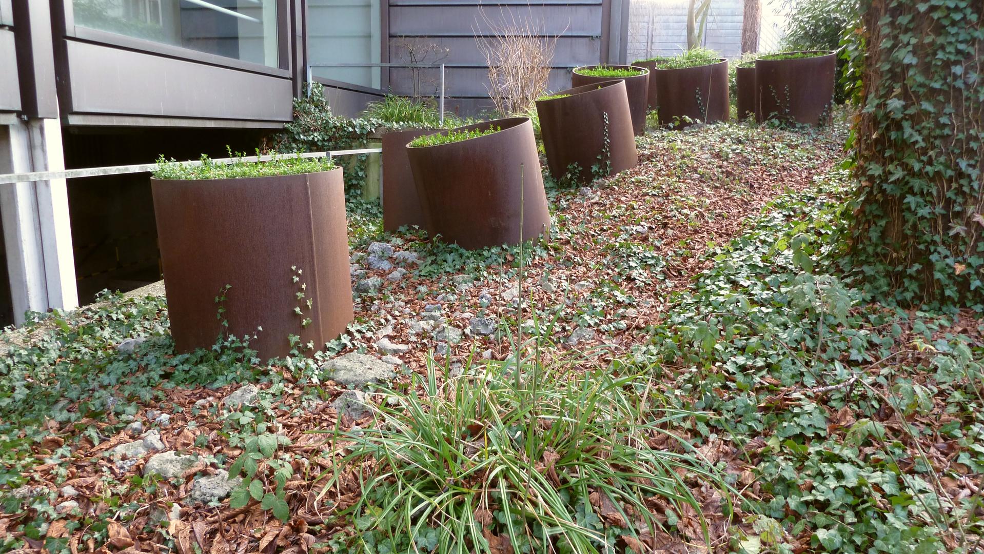 Die Installation befindet sich in der Grünanlage hinter dem Museum Bochum und ist am besten von innen durch die große Fensterfront im Erdgeschoss zu sehen. Aber auch vom Standort der Olympia Hymne von Wolf Vostell aus ist das Werk sichtbar. Die Installation besteht aus neun in das abfallende Gartengelände eingelassenen Stahlrohrsegmenten, die mit Buchsbaum bepflanzt in ein Steinfeld aus Verhüttungsasche gesetzt sind.